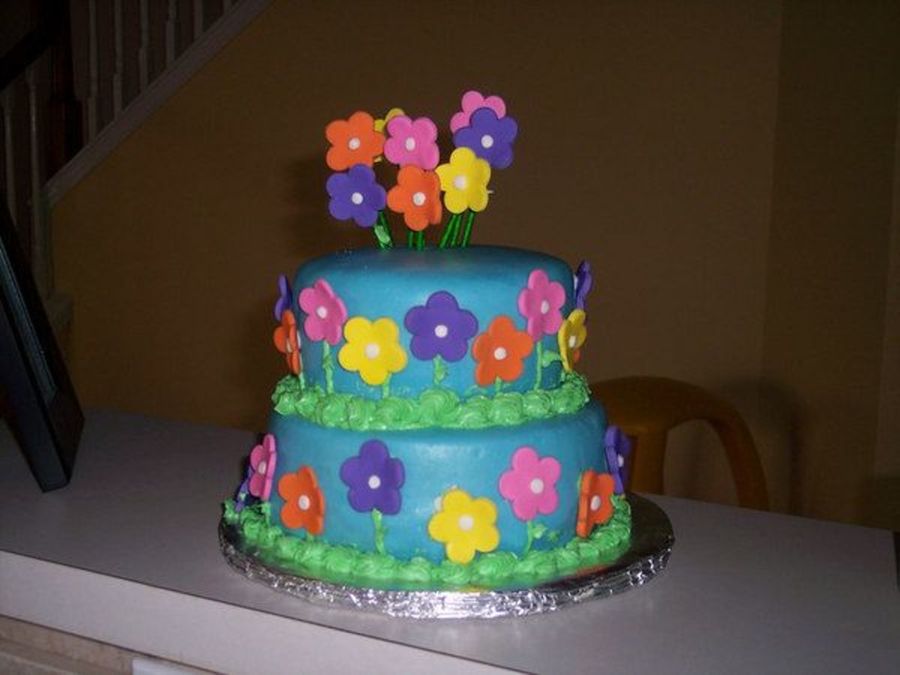 I forgot my camera at home so I didn't get a good picture of it finished. Then during the process of transporting it home the cake slide and one side collapsed. So this picture is and after shot once I doctored it up a bit.