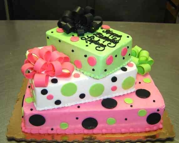 This cake is beautiful too!!! I really love the different color layers with the coordinating dots. Very impressive!!