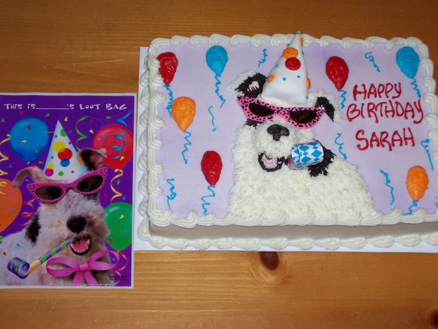 This cake was designed using the Loot bag. The muzzle is made with a large marshmallow and the bottom jaw is aluminum foil covered with BC frosting. Party hat is covered in fondant. Originally started with a FBCT, then overpiped with "grass/hair" tip.