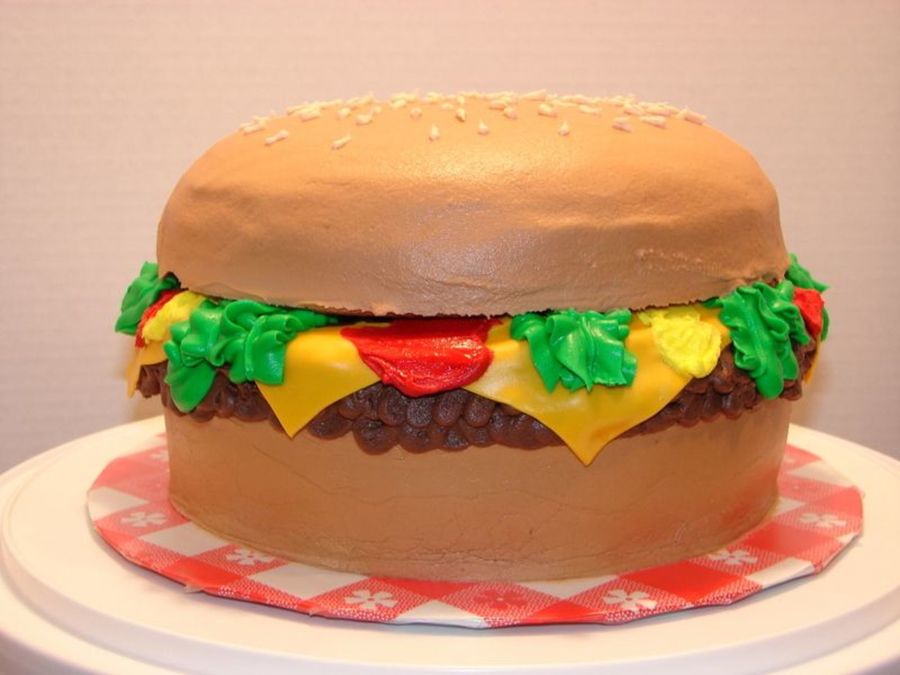 I love everything about this cake! You did a fantastic job! Don't be so hard on yourself. It makes me hungry for a cheeseburger!