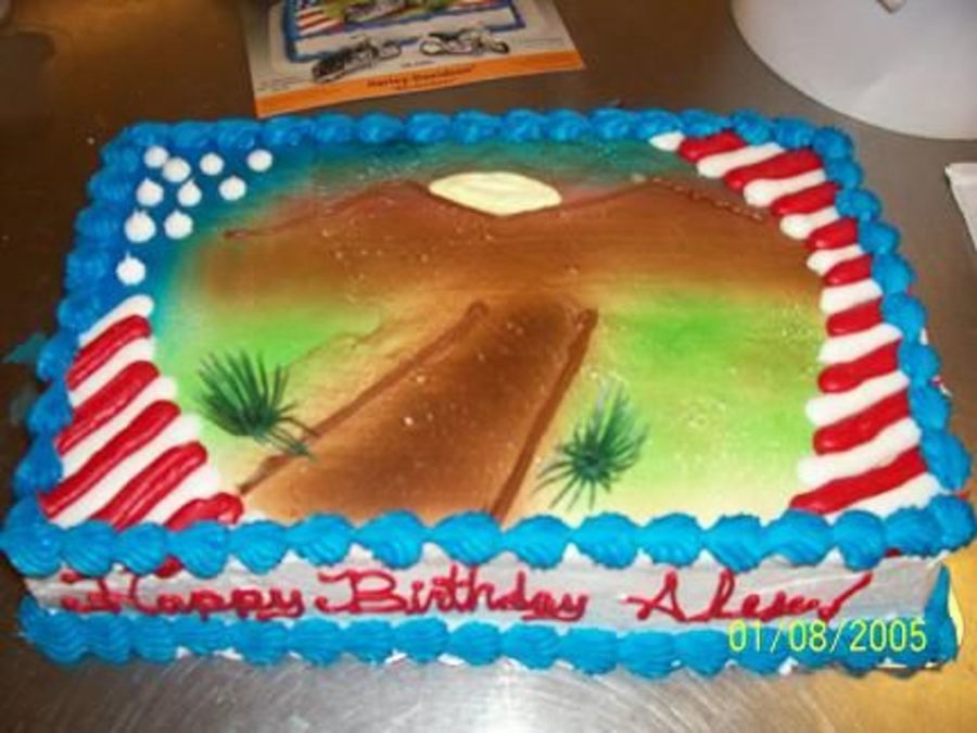 I work at a local bakery ad this was a Harley Cake kit for someone's son. I didnt put the bikes on it because the lid wouldnt fit.