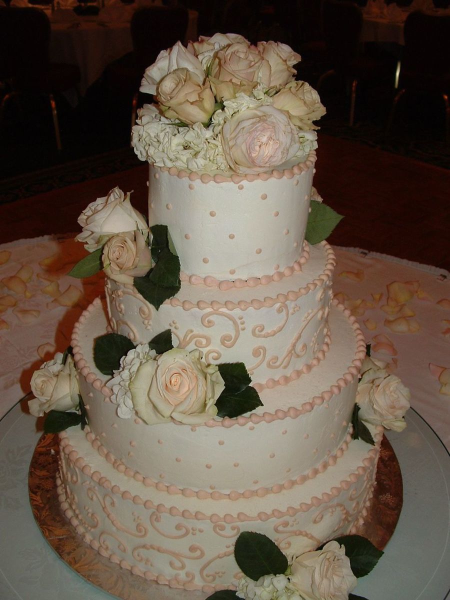 All iced and piped in buttercream. I also arranged the flowers. Tucked inside is alternating layers of White and Dark Chocolate cake.