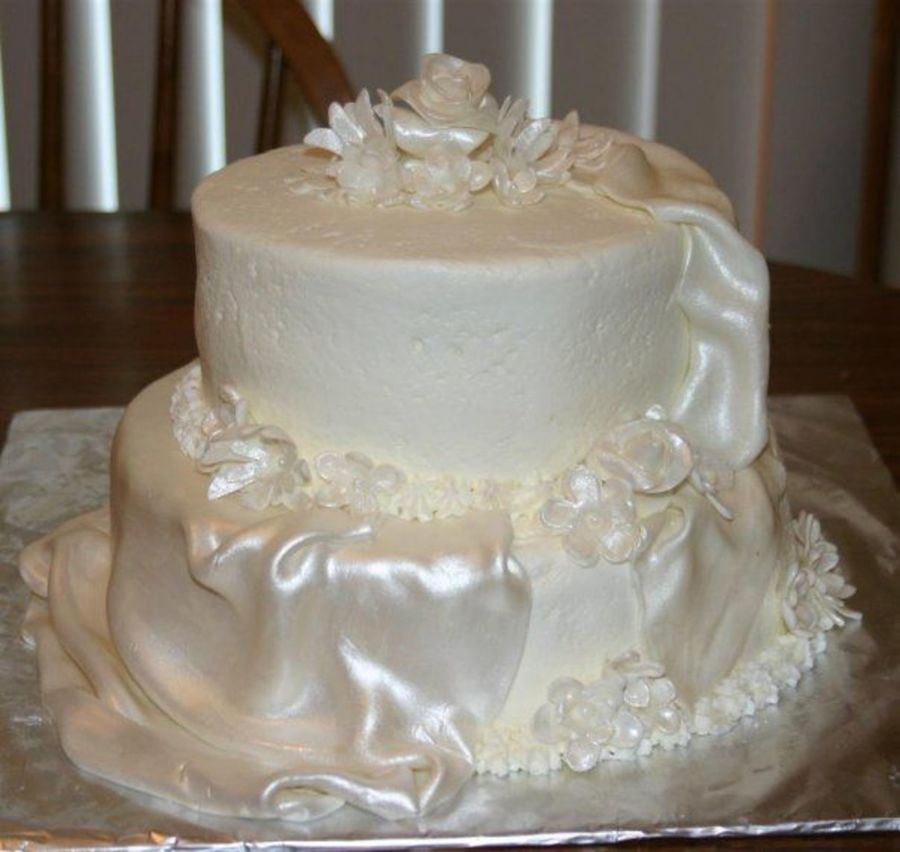 jguilbeau on 12 Jul 2007 , 5:17pm Very elegant cake. I especially like the way the pearl dusted drapes look against the buttercream.