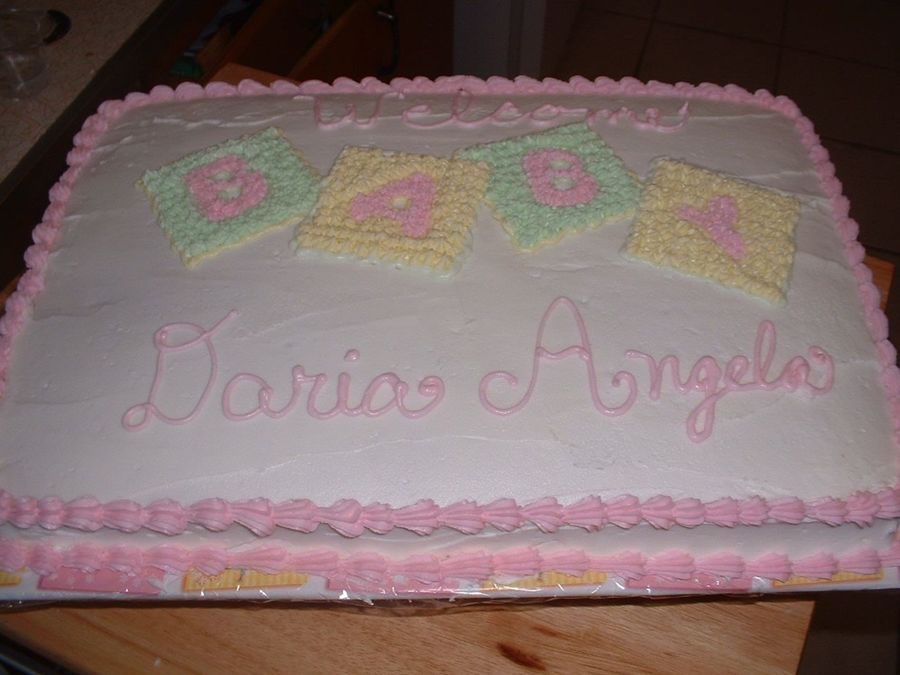 I was inspired by several cakes here on CC for this one. We had a surprise shower for a friend. All buttercream, choc/yellow cake.