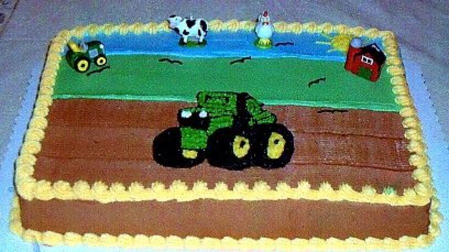 This cake allowed for four different choices of cake. It is half and half chocolate/vanilla cake and half and half chocolate and white frosting on top. Satisfied all tasks. Used frosting tip to make chocolate look like plowed field.