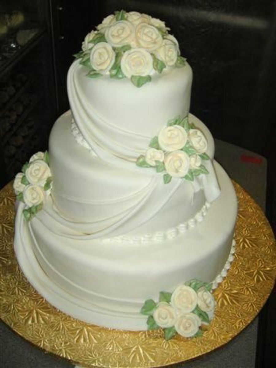 The swags and roses are just beautiful and the fondant is perfectly smoothe! Excellent job!