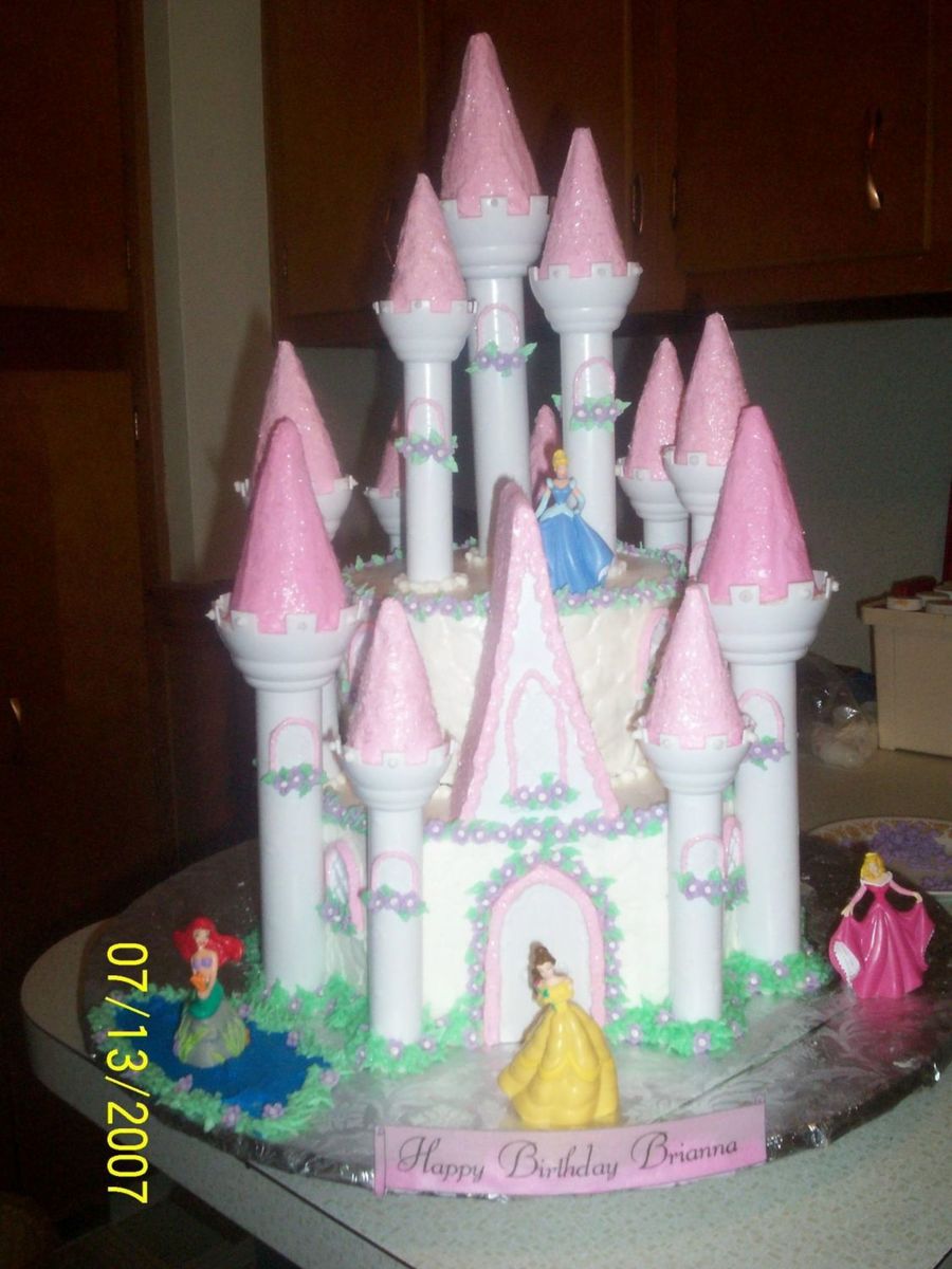 This was for my daughter's 7th birthday. I used the Wilton Castle Kit and added the Disney Princesses. The cake is Buttercream. The flowers are fondant.