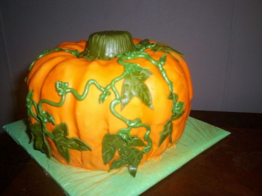 This is my version of the "bundt pan pumpkin cake". I made it for my younger SIL. She needed some cakes for her schools fall carnival cake walk. So this is one of the two cakes. All covered in mmf.