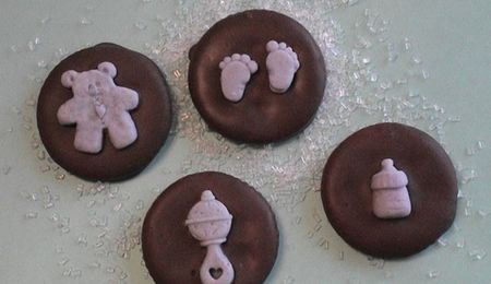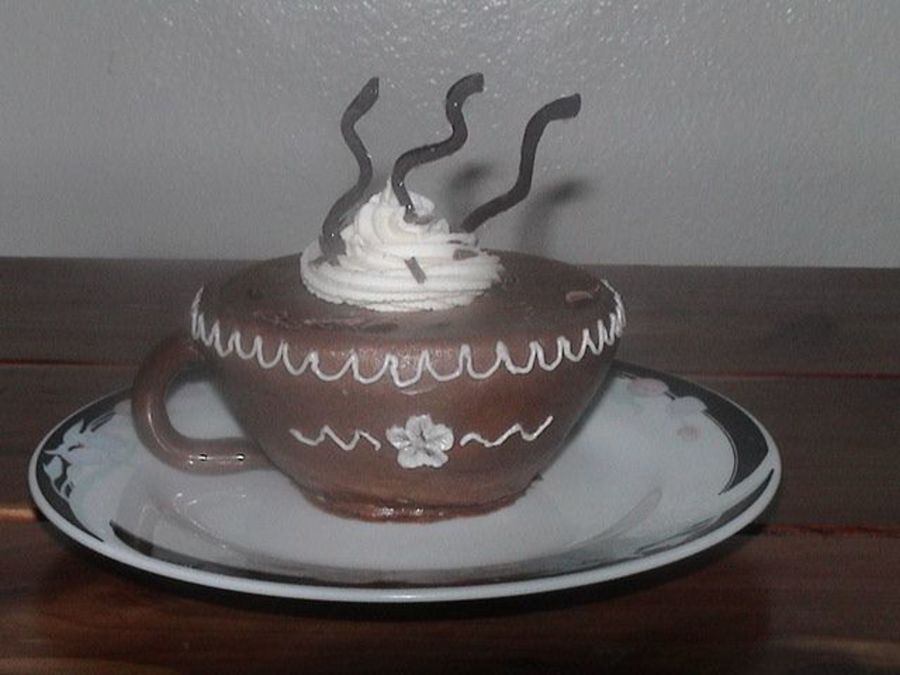 4" bunt pan (wilton 2 pans per package), choc. frosting, tootsie roll handle, and the steem is melted choc. in a zip lock cut the corner and squeezed out squigles and before they dried I put glitter on them, Oh and used some shaved choc atop the white frosting/aka cool whip look :)