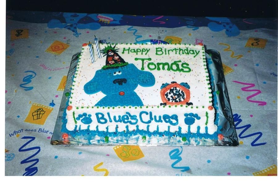 B-Day cake for my son's 2nd bday. He LOVED blue's clues then ... 11x15 sheet cake, all buttercream frosting, freehand artwork