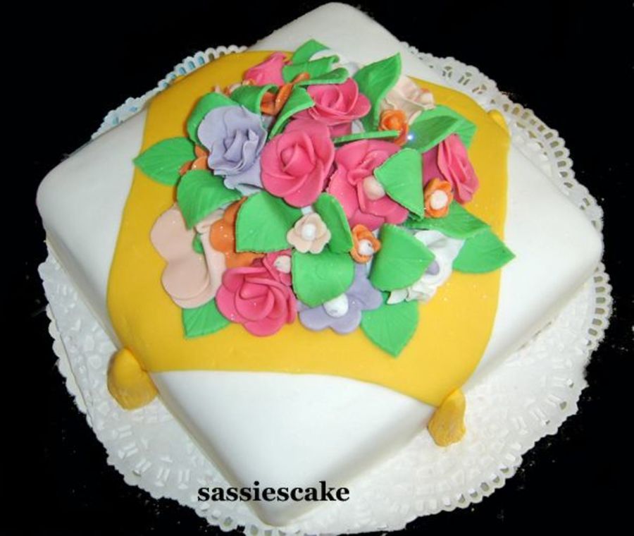 Hello, i made this for one of my best friends who loves flowers. All flowers are made of sugarpaste, the cake is also covered with sugarpaste and filled with coconut creme.