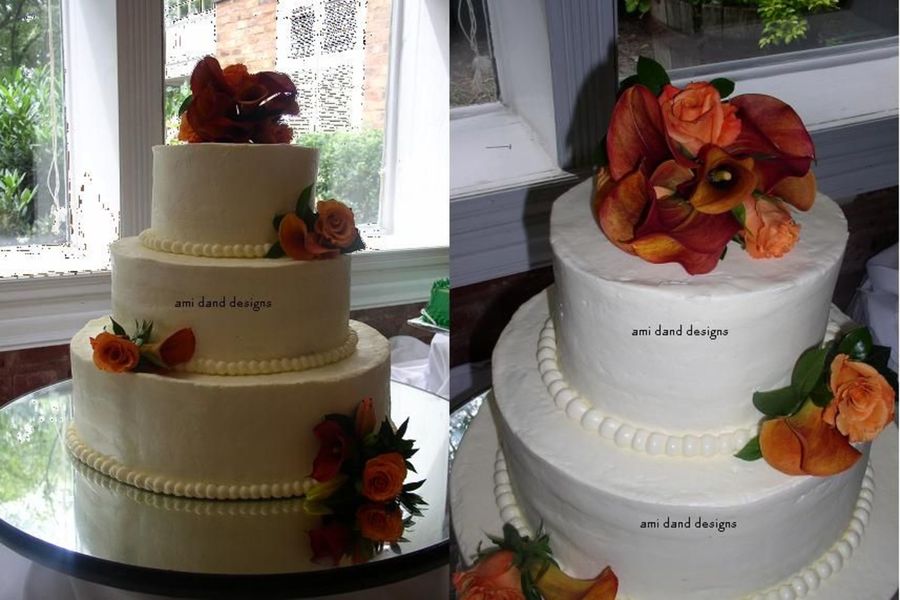 Buttercream icing with fresh flower decor. Like the choice of flowers...not the usual roses, or the usual colors