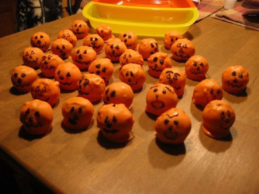 What a cute idea! I was planning on making some of the eyeball ones, but doing some Jack O Lantern ones would make a really cute non-gross alternative!