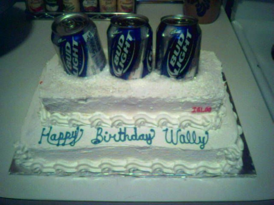 I did this for another co-worker's 50th b-day. Not my best work. I think it would have come out better if I had used fondant on the sides of the "cooler" but I don't like fondant and neither do my co-workers. Also, I could not find rock candy so I used edible glitter and sanding sugar for ice. It looks much better in person. Oh well, it was good practice anyway.