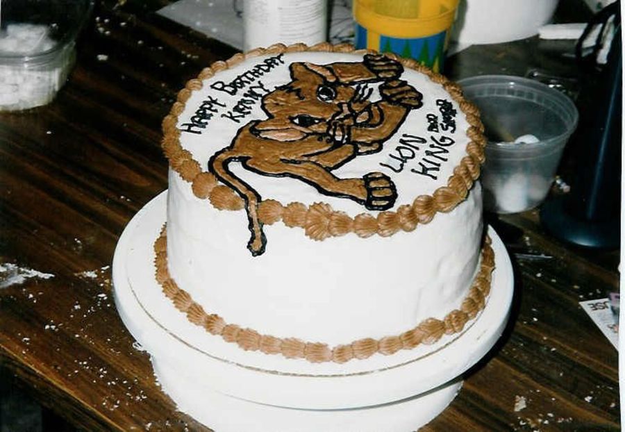I sketch out simba on a piece of cardboard. then i layed a sheet of wafer paper on top and traced it using buttercreme that i tinted black. i then trimmed around the design and carefully layed it on my cake covered in buttercreme. i slighly wetted the edges so that it would lay correctly than i just fill in the colors using tinted buttercreme. i hope this helps. if u have anymore questions pls feel free to contact me.