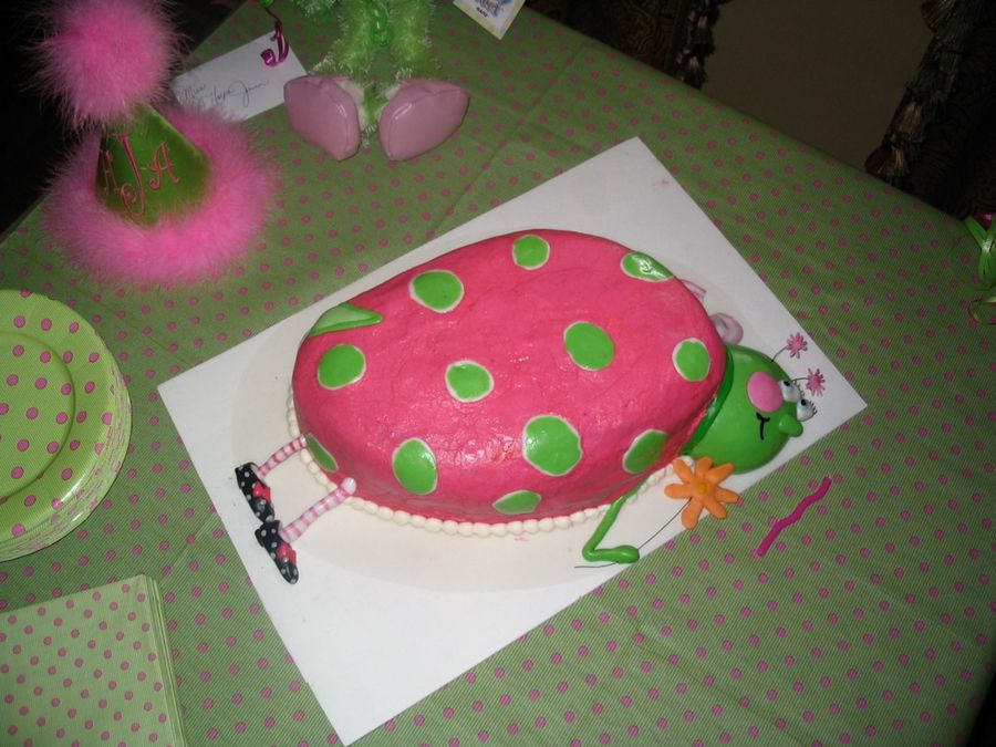 delithra on 16 Jul 2007 , 9:33am this is sooo cute !!! i love the ladybug ! cool cake,..great colors !