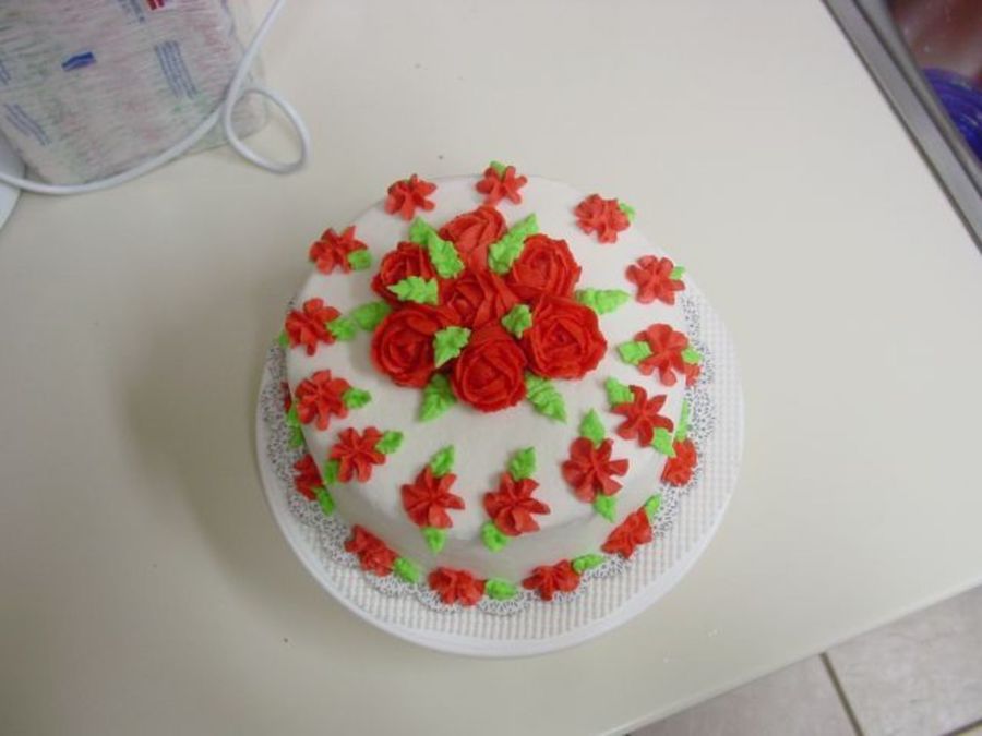 This is another cake I did to practice roses and design. I designed this one myself and really liked the way it turned out. Let me know what you think. Bradymom6