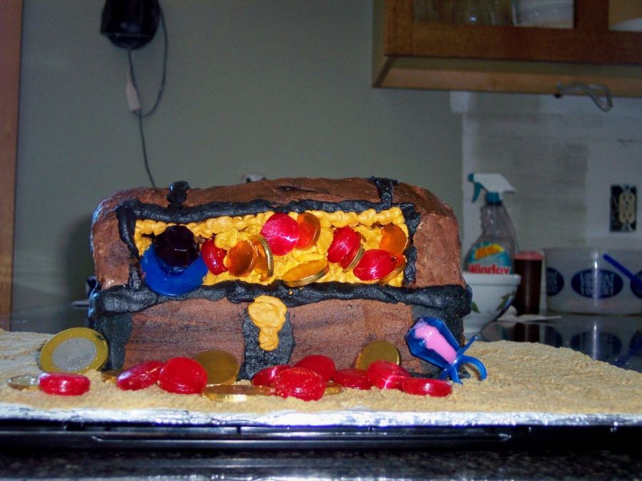 Bc icing & borders foil wraped choc. coins & ringpops crushed gramcracker sand ricecrispie treat lid w/ bc