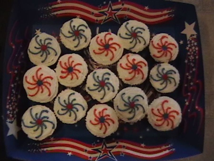 made these to go with lil flag cupcakes. I love cupcakes for taking away. they are so much easier than trying to cut and serve for a bunch of guys. These have jumbo star candies in the middle and icing sparks.