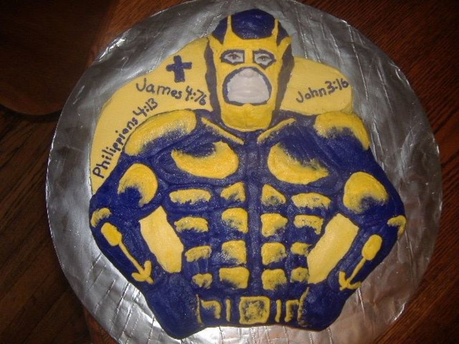 Chocolate cake w/ bc. Vintage superman pan with his plastic face