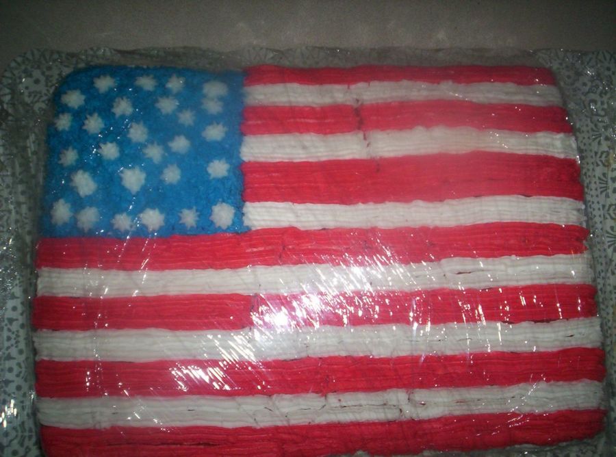 I did this one for the church picnic on the 4th and won first place for haveing the most patriotic!! I used butter cream icing and layered the cake with red, white, and blue.