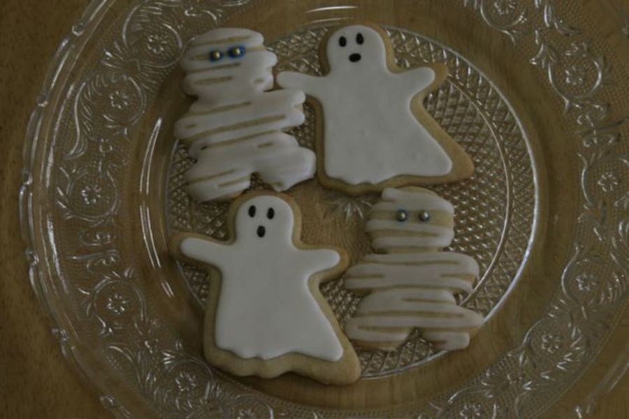 I did these for a Halloween Party. Sugar cookies - ghosts are covered in MMF and faces are colored in with food writers. Mummy is covered in a cookie glaze with gold dragee eyes.