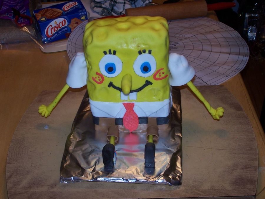 This is a cake i made for a friend as a house warming present... I had some trouble with teh yellow fondant and tryign to get it smooth on the corners.... over all i think i like him, i liked making all the little details of him too, very fun