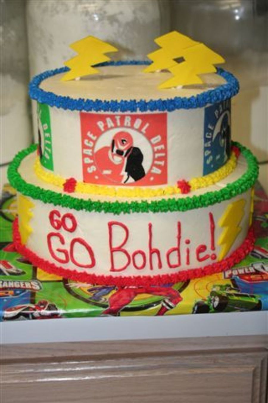 Power Ranger cake - all buttercream with edible images. I put some power ranger figures on the top when I got to the party.