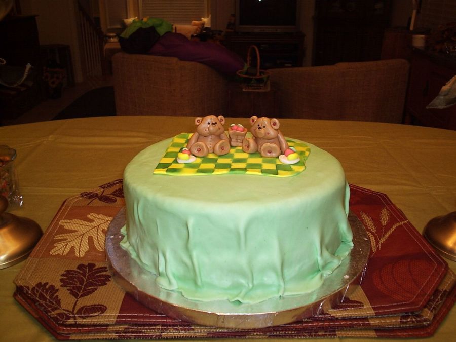 i made this for my moms birthday. she loves bears. the bears are made out of fondant. the cake is chocolate with strawberry filling