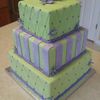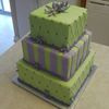 10 - 8 - 6 square 4" high each tier. Covered in fondant with buttercream pearl border and dots. Gumpaste starflowers . Cake was fun to do!