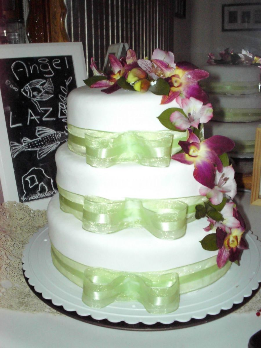THis is a lemon flavor cake with lemon curd and raspberries, covered wiht mmf. Made for the wedding of a friend.