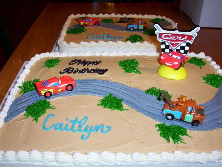 These two cakes were done for a cars themed party... A Cars themed candle was used as well as the lil toppers...