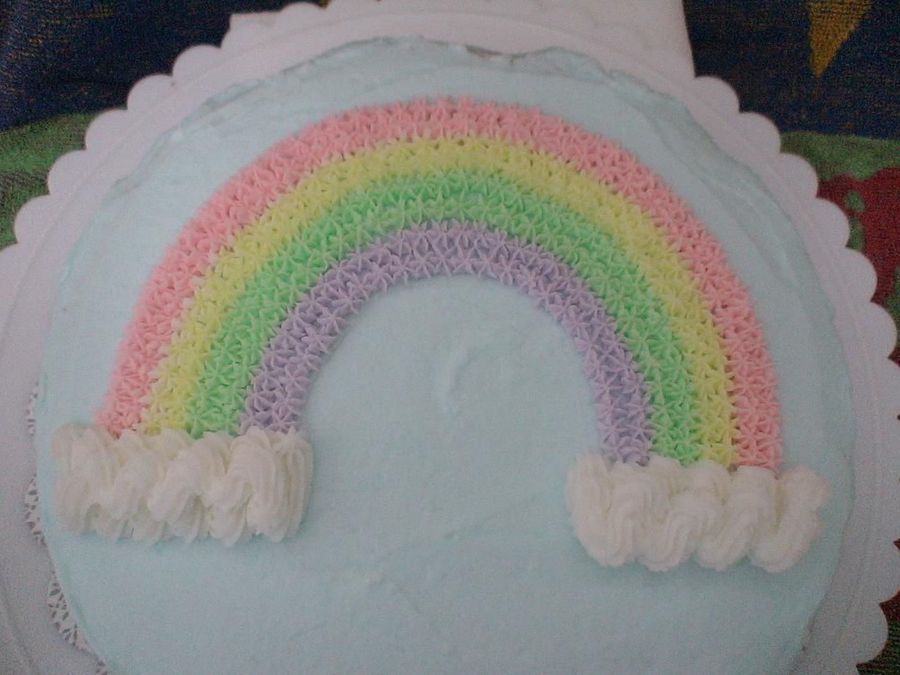 rstorman on 19 Jul 2007 , 6:54pm I used a stencil to trace the rainbow onto the cake...using parchment paper and piping gel.