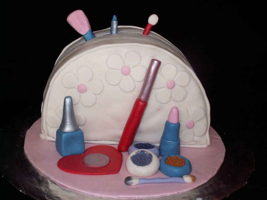 This is Debbie Brown's Make-up Bag design. This cake was made for a girl's 24th birthday. It was half vanilla and half chocolate.