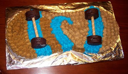 Attempted this cake for my son's teacher. I never did give it b/c the wings would not stay in place. They were Fondant (from a box) and they wouldn't dry, when they finally did they wouldn't stay up. It was my first attempt at black icing.