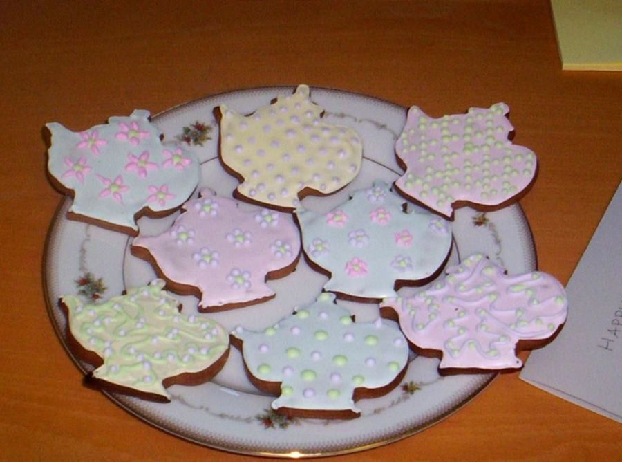 Those are so pretty. I was thinking of doing teapot and tea cup cookies for my daughter's birthday and now you've inspired me to give it a go.