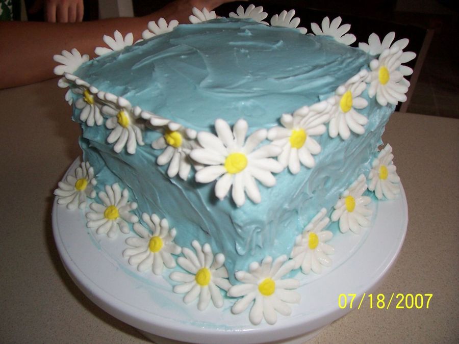 I made this cake to have after dinner tonight. It was crumb city! So that's why I didn't smooth it, figured i'd give it that wavy look ;) BC, with royal icing daisys. TFL