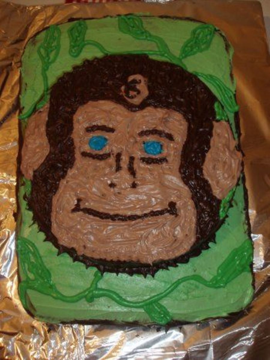 Well I made this for my daughters 2nd birthday.. she loves curious george and I couldnt find a toy to put on top like I normally do so I just free handed this monkey and gave him blue eyes like hers.. she loved it and I must say Im pretty proud..