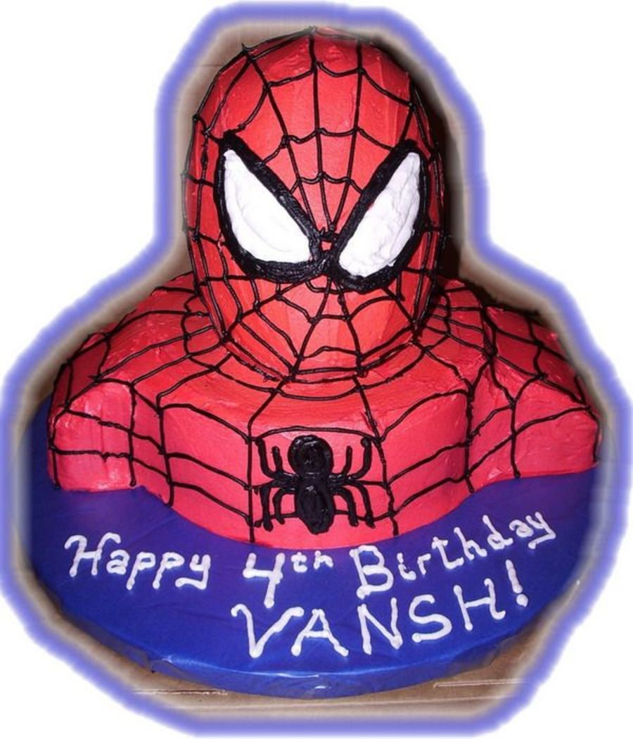 Spiderman bust made using 8" cake for body & 5" for shoulders. Rice Krispie treat head. Done using instructions found in a link here but I don't remember who posted it originally. But THANKS for sharing! The cake was a hit!