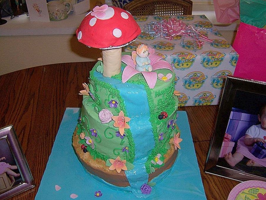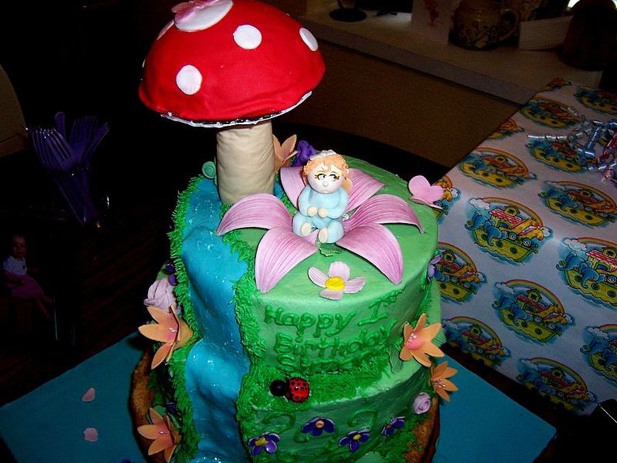 I love this...the flowers are wonderful, and the one with the baby is precious...I also LOVE the mushroom!!!!! The whole thing is adorable, really. (I agree about the 1st B-day!!! :lol: