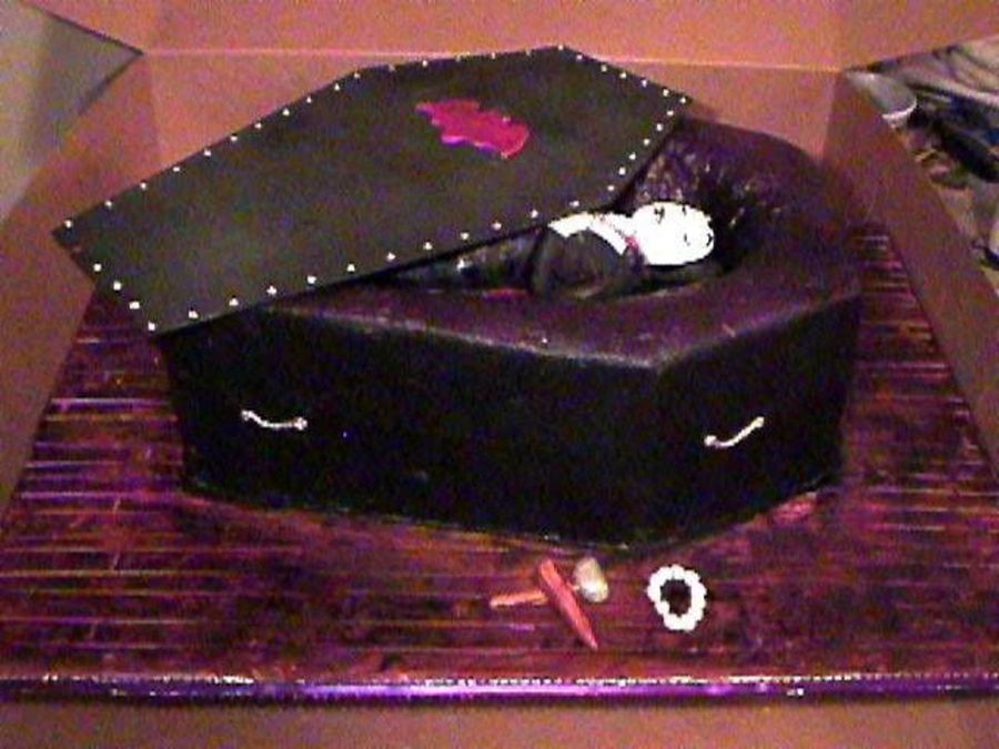 mmf dracula in a vanilla and carmel cake. buttercrem decorated cake with mmf lid.