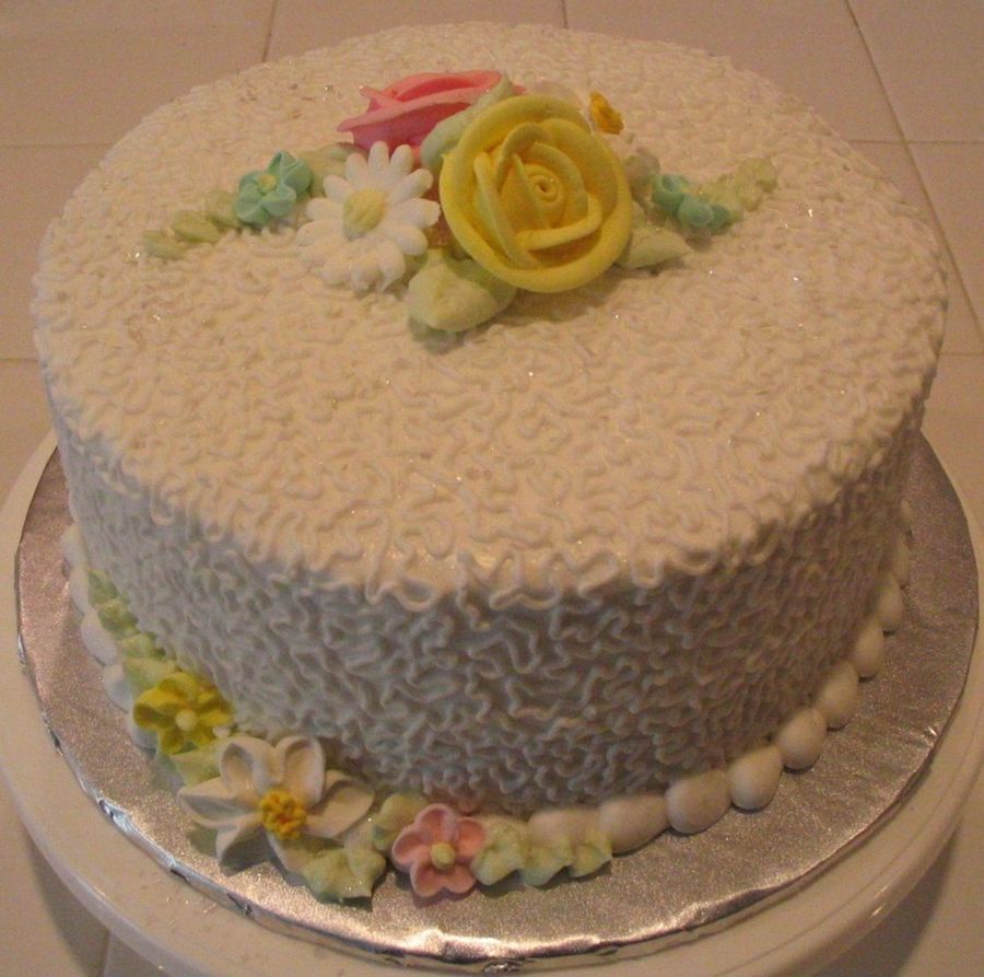 This was a last minute cake I did for a guy a work with for his anniversary. Just a basic yellow with BC and RI flowers. Would have used a filling to spice it up a little but I didn't know what his wife liked! Only instructions were "make it pretty" Hopefully she liked it. Guess I will find out tomorrow.