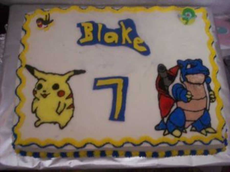 I made this cake for my grandson's 7th birthday. Pikachu and Blastoise. They are buttercream transfers which I really don't like doing. 2 other ones didn't come out so I had to can them. All buttercream, chocolate cake with chocolate whipped cream filling.