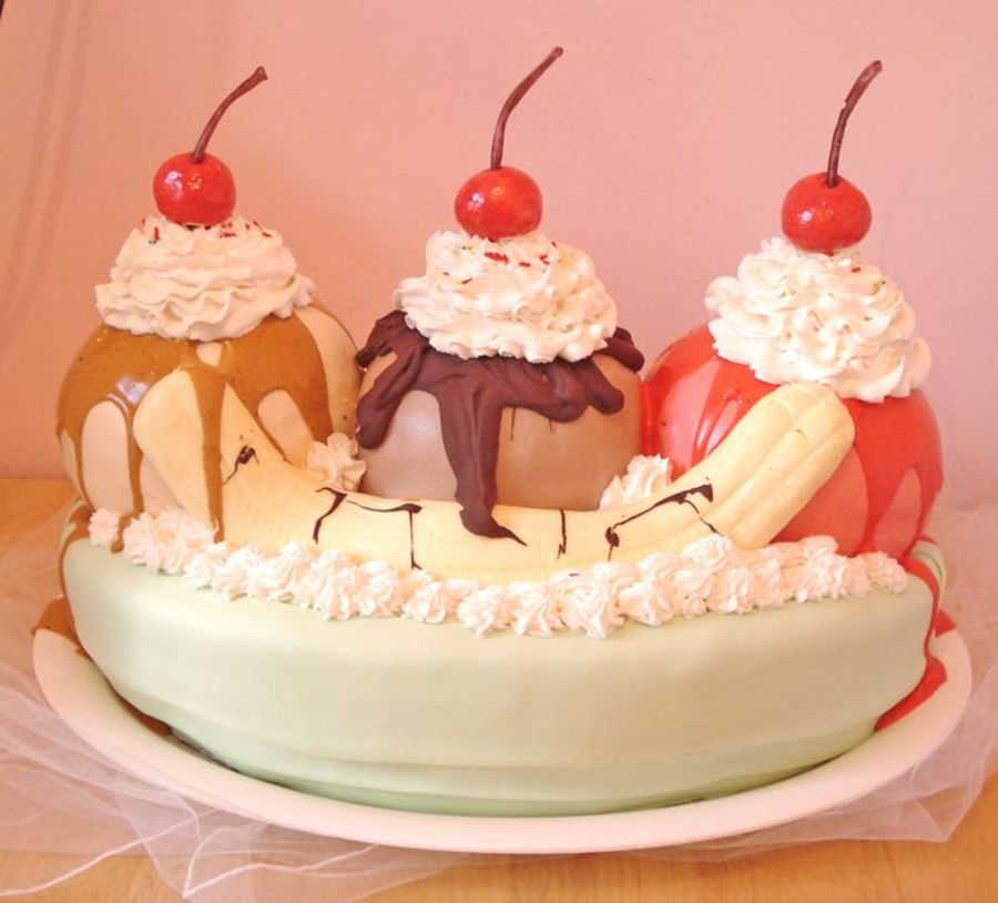 Sorry guys.....I guess this description came across as haughty.....I am rescinding what I had written under the description, and just hope you enjoy trying out this cake design! No need to give any credit! It is, after all, a banana split like any other. :)
