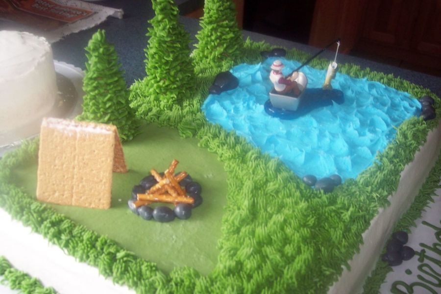 That's awesome! I love your cake... I love how you used things like graham crackers and pretzels for the tent and the wood. Fabulous...