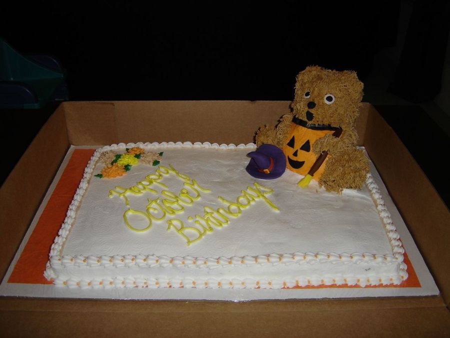 Big bear cake pan...frosted in buttercream..with fondant broom & hat