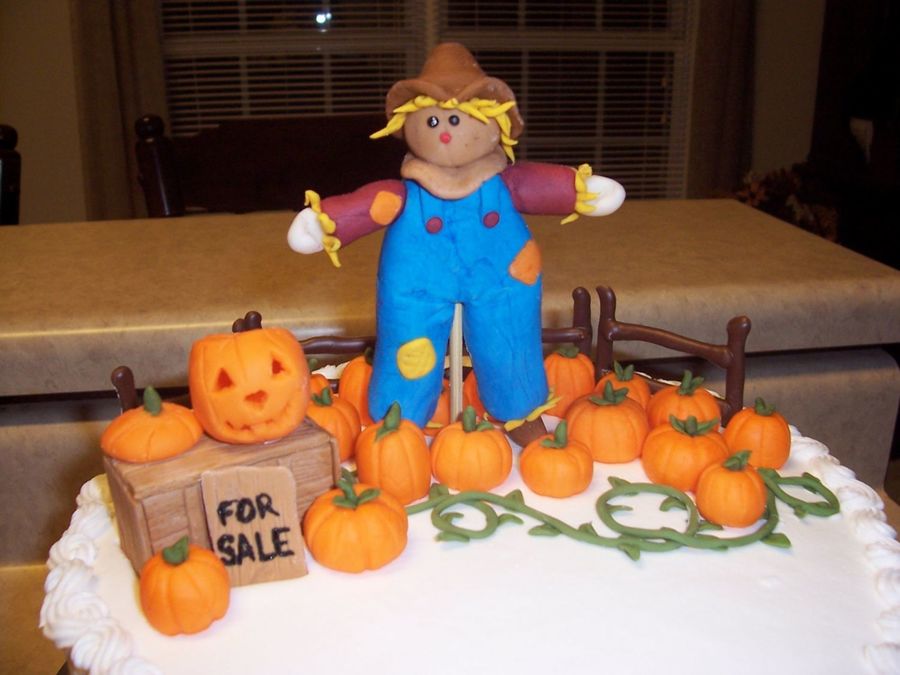 such a cool cake love the scarecrow and that jack-o-lantern is just over the top what great attention to detail!!!