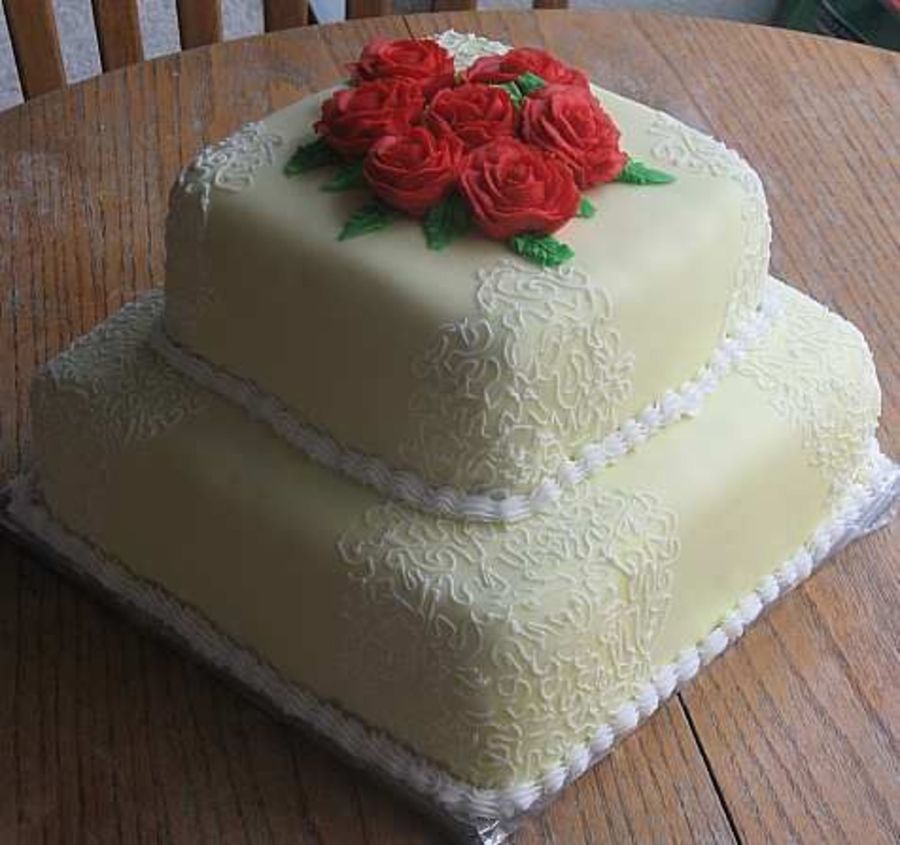I love your foundant. I've been doing cakes for three years and last night I made my first batch of MMF. Was it hard to do the square cake corners??? You did a great job on your roses, your lace work and your foundant.