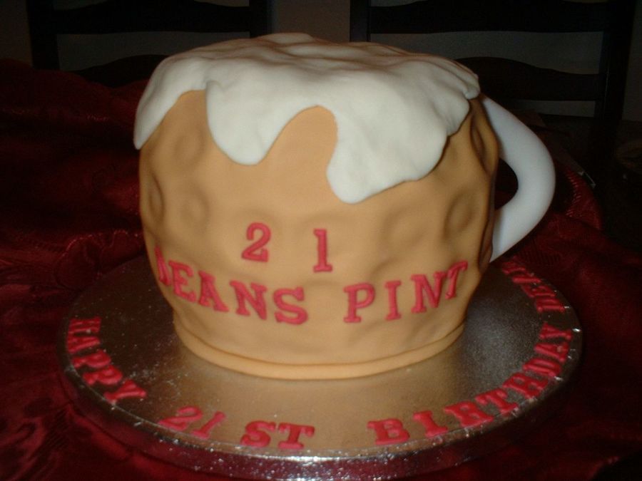 My friends son wanted a cake resembling a pint of beer. This was a sponge cake covered in sugaarpaste and dimpled with the end of a rolling pin I use for sugarpaste.