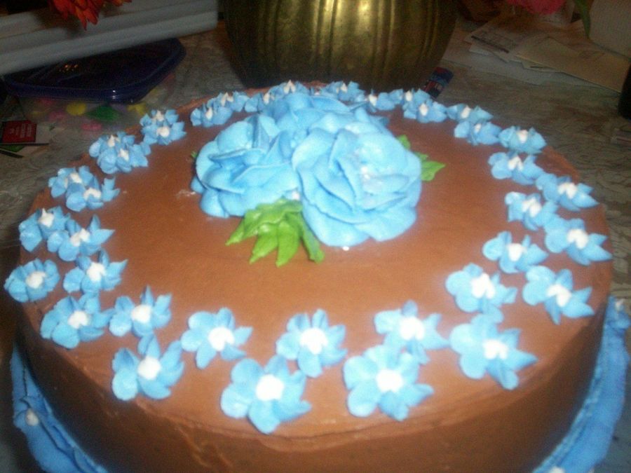 daisyblue on 3 Nov 2006 , 2:52am Sooooo pretty!! I love the blue flowers with the chocolate icing. Great job!!